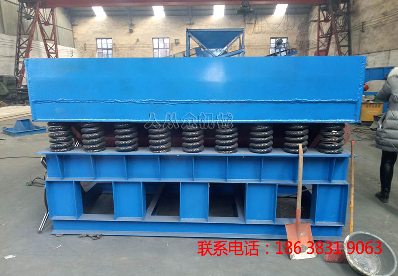 振動(dòng)落砂機(jī)主要由框體和底座兩部分組成,全部采用焊接結(jié)構(gòu),振動(dòng)部分框體由兩排彈簧支撐在機(jī)器底坐上,落砂機(jī)框體側(cè)面水平對(duì)稱安裝兩臺(tái)震動(dòng)電機(jī),激振力的合力與柵格的上平面垂直,形成一個(gè)單質(zhì)體結(jié)構(gòu),促使砂箱與型砂分離,鑄件與型砂分離,以及砂團(tuán)破碎,砂團(tuán)**大塊度小于40mm,電機(jī)裝在外側(cè),使用維修方便。