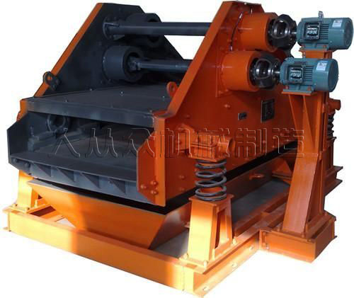 脫水篩是煤泥脫水篩作業(yè)的專用振動(dòng)篩,結(jié)構(gòu)上主要由篩箱、支承系統(tǒng)及振動(dòng)電機(jī)等組成。 脫水篩的的激振器有通用型偏心塊、可調(diào)振幅振動(dòng)器,通過雙電極自同步技術(shù),分別驅(qū)動(dòng)兩個(gè)互不聯(lián)系的振動(dòng)器作同步反向運(yùn)轉(zhuǎn),兩組偏心質(zhì)量產(chǎn)生的離心力沿振動(dòng)方向的分力疊加,反向離心力相互抵消,從而形成單一的沿振動(dòng)方向的激振動(dòng)力,使篩箱做作往復(fù)直線運(yùn)動(dòng)。