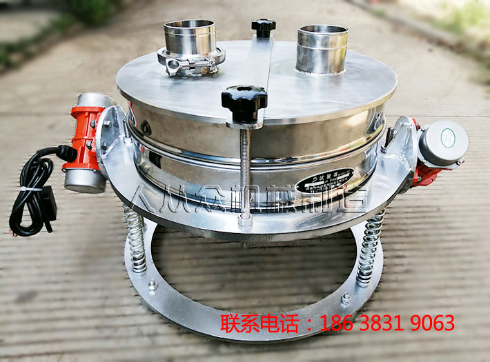 直排篩采用一個或者兩個臥式振動電機帶動機器運轉,通電后,振動電機利用自身的偏心塊產生高頻激振力帶動篩框做水平、垂直和傾斜的三次元振動,使物料在篩面上沿橢圓形軌跡做跳躍運動,物料跳躍前進中較小的物料會通過篩孔落到下一個篩面進行重復篩分動作,這樣物料就被篩分出了幾個層次,**下面的**細小,越往上越大。篩分中,改變上下偏心塊的相位角和重量,可以改變激振力的大小和物料的運動軌跡。