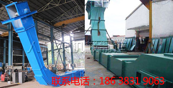 垂直提升時,物料受到刮板鏈條在運動方向的壓力,在物料中產生了橫方向的側面壓力,形成了物料的內摩擦力。同時由于下水平段的不斷給料,下部物料相繼對上部物料產生推移力。這種摩擦力和推移力足以克服物料在機槽中移動而產生的外摩擦阻力和物料自身的重量,使物料形成了連續(xù)整體的料流而被提升。