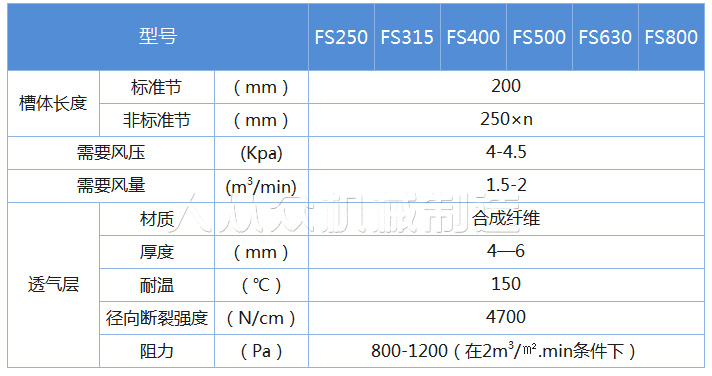 風送斜槽技術參數: