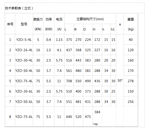 YZO振動(dòng)電機(jī)型號主要有:YZO-5-4L、YZO-16-4L、YZO-30-4L、YZO-50-4L、YZO-75-4L、YZO-30-6L、YZO-50-6L、YZO-75-6L、YZO-100-6L等。