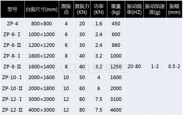 混凝土試塊/預(yù)制件振動(dòng)平臺(tái)技術(shù)參數(shù):